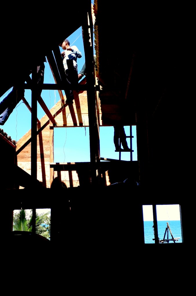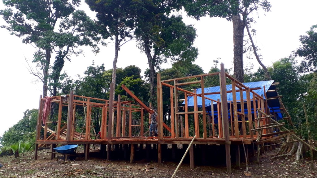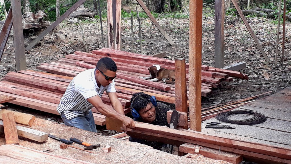 Because of environmental concerns and logistic constrains the project relied exclusively on muscle power, my team averaged between 12 to 22 men and one woman for diversity purposes (just kidding, she was our cook). With the exception of chainsaws and boats no motorized equipment was used. Even the workers accommodation was entirely built out of wood, with chainsaw, hammer and nails.