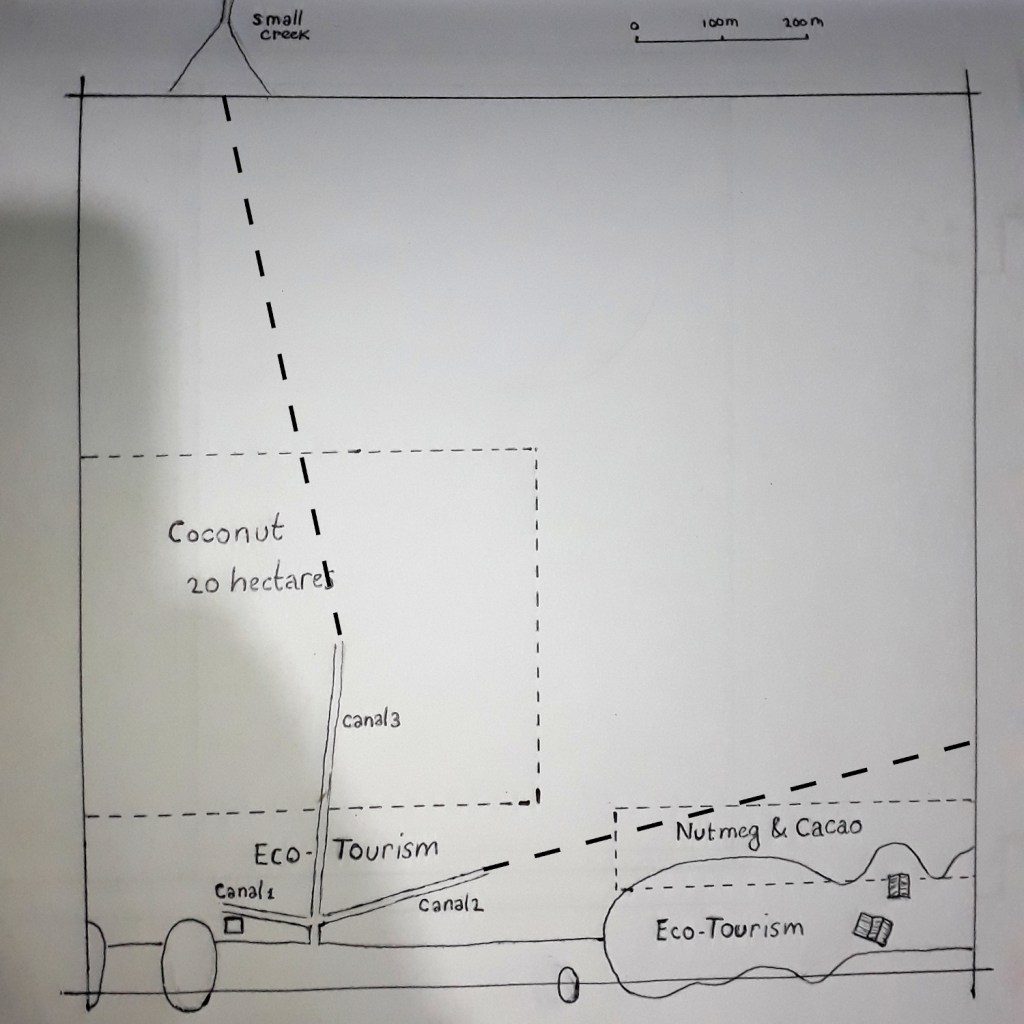 In addition to the canals and housing, several hectares were cleared and planted with coconut trees, and many ornamental plants were planted for future gardens.