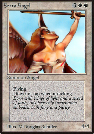 When I had just started magic at age 13, I tried to draw a topless version to impress my friend. Alas my skills were not up for the task so I never finished it. Now with the help of Gimp and some anonymous topless girl from the internet, it’s a piece of cake. Here’s to you Douglas, Serra Angel the way you wanted to draw it had you been allowed to do so.
